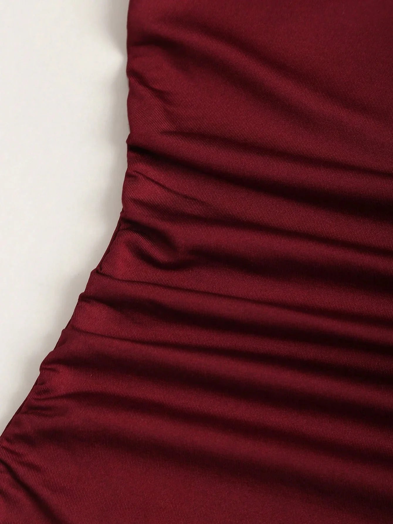 Turn heads in the Anna maxi dress, crafted with a sleek, stretchable surface and figure-enhancing details. Featuring slim straps, a soft draped neckline, and a ruched bodice, it’s designed to flatter and flow—perfect for warm days, transitional weather, and elevated events.