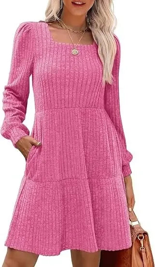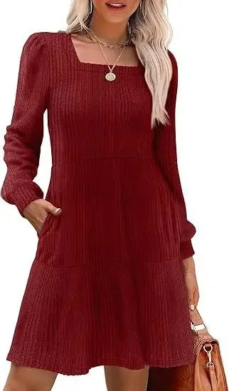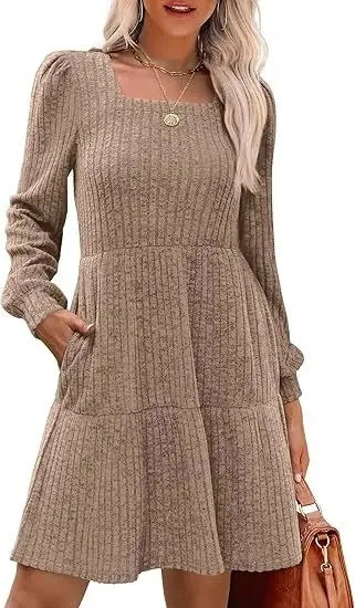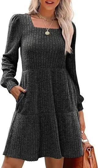 The Emma Elegant Mini Dress combines timeless style with a modern twist. Perfect for all seasons, this dress features a flattering empire waistline, square neckline, and playful doll pockets. Whether for a casual outing or a special event, this dress will make you feel stylish and comfortable.