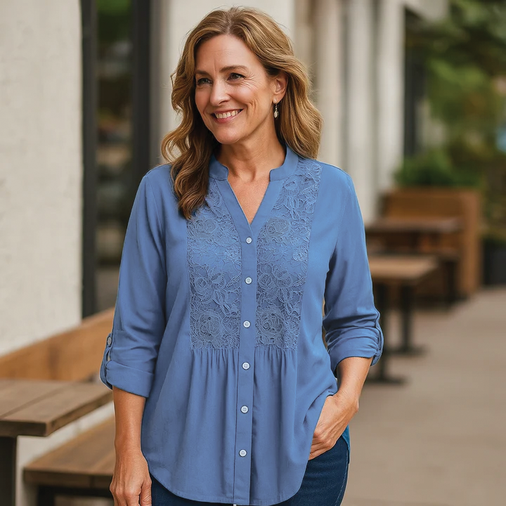 The Ariana blouse blends timeless tailoring with delicate lace details to elevate your everyday wardrobe. Designed for flattering coverage and versatile wear, this long blouse is perfect from desk to dinner.